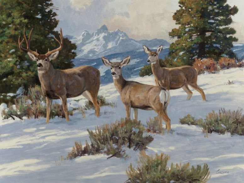 Three Deer in a Snowy Landscape