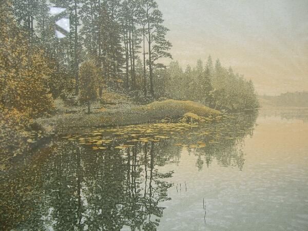'Calm Inlet', wooded riverscape at dawn