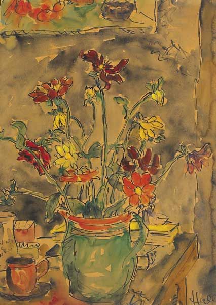 STILL LIFE WITH FLOWERS AND TEA CUP