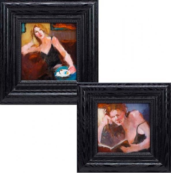 Pair female portraits: "Bookworm" and "Tea and Modigliani"