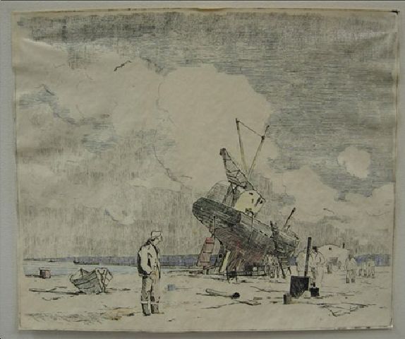 FISHERFOLK ON BEACH, NOVA SCOTIA