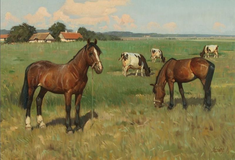Horses and cows