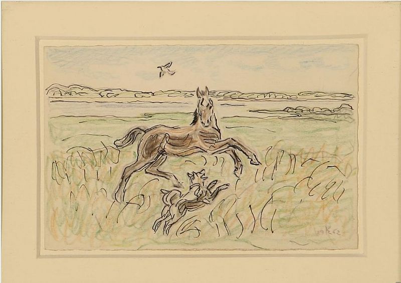 Landscape with horse and hound