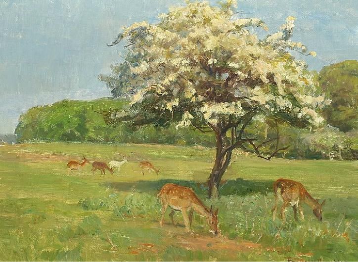 Deer under a blooming tree
