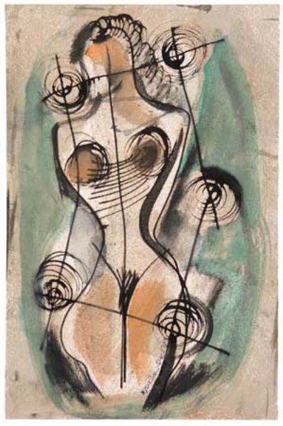 | Brush and ink, watercolor and gouache on cream laid paper | |
