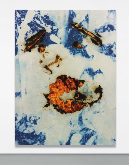 | Acrylic and inkjet print on denim laid down on canvas | |