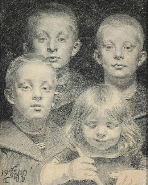Blad med fire dregneportrætter, dav. overlærer C. H. Rafns sønner