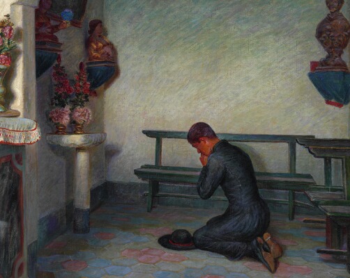 | Kneeling young clergyman in the Cathedral's crypt, Amalfi | |