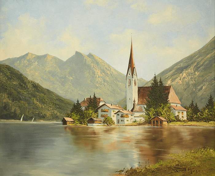 Ansicht auf die Dorfkirche von Rottach-Egern am Tegernsee