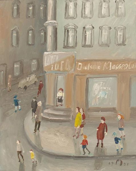 | Belebte Berliner Straßenszene mit Lotto-Geschäft an Straßenecke | |