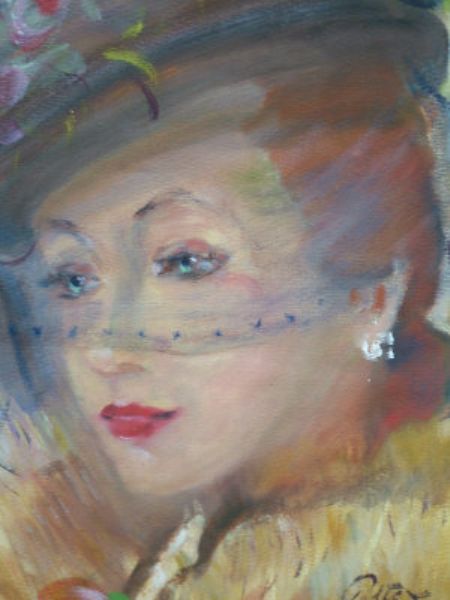 Portrait of young woman, head and shoulders wearing a hat with a veil