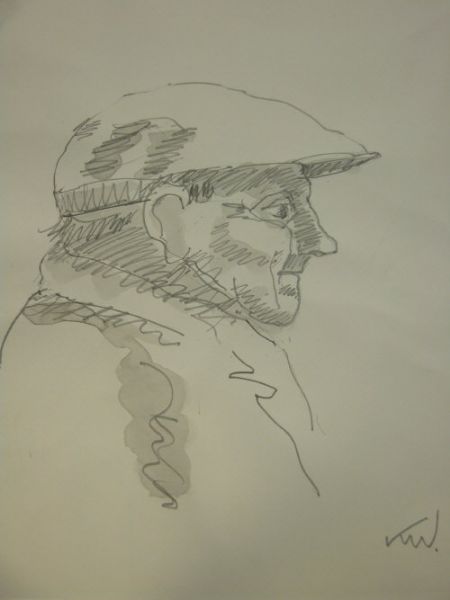 farmer in cap looking right