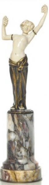 'GRAPE HARVEST' A GILT- BRONZE AND IVORY FIGURE