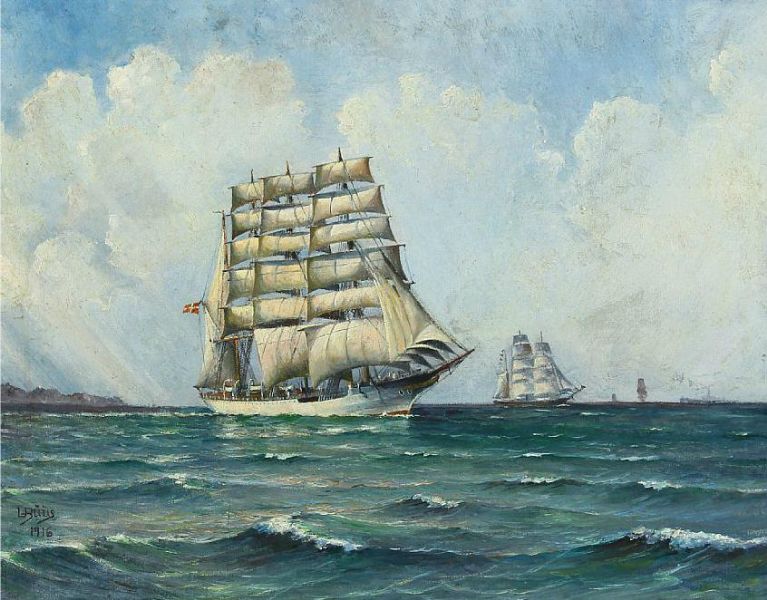 Seascape with sailing ships