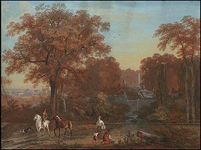 | HERBSTLICHE PARKLANDSCHAFT MIT KASKADENBRUNNEN, BRUNNENFIGUREN UND PERSONENSTAFFAGE | |