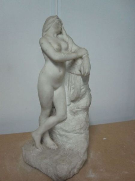 Femme à la lyre appuyée sur un rocher