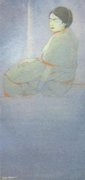 A Female Figure seated on a Wall