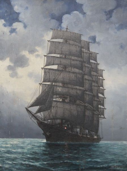 Schooner under way at dawn and at dusk