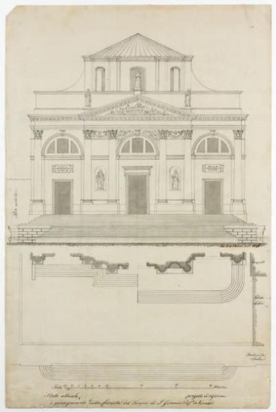 Projet pour la façade de l'église S. Geremie à Venise Plume, lavis gris. (Petite déchirure)