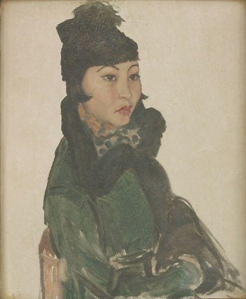 | PORTRAIT OF A CHINESE WOMAN, HALF LENGTH, SEATED ON A CHAIR IN A HAT AND A FUR LINED COAT | |