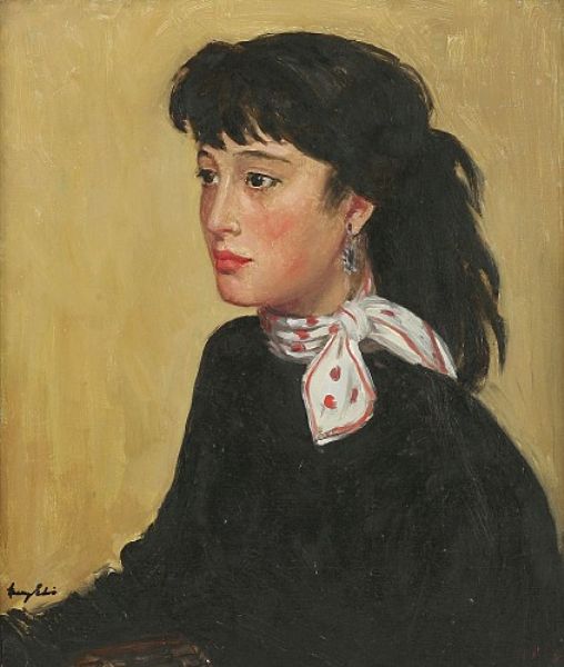 PORTRAIT OF A YOUNG WOMAN, HALF LENGTH, WITH A SILK SCARF