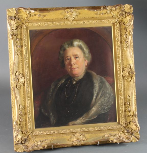 | head and shoulder portrait of a lady wearing a black gown with shawl | |