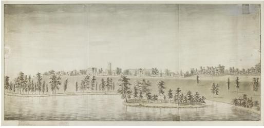 | A view north-east across the lake from Blenheim Palace towards the town of Woodstock, showing the proposal for a Gothicised peri | |