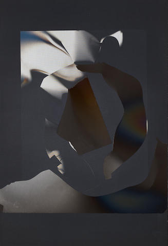 Collage with aluminum and silicon monoxide on black paper mounted on canvas