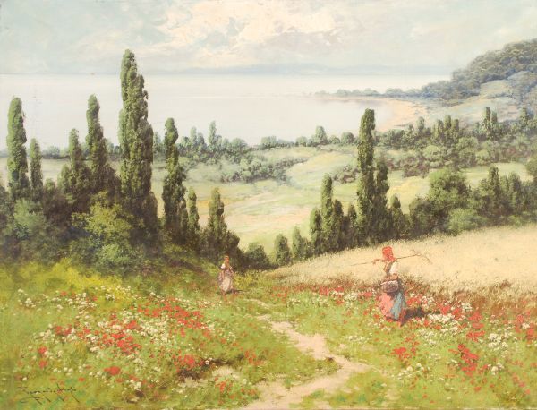 Workers in the fields above Lake Balaton, Hungary