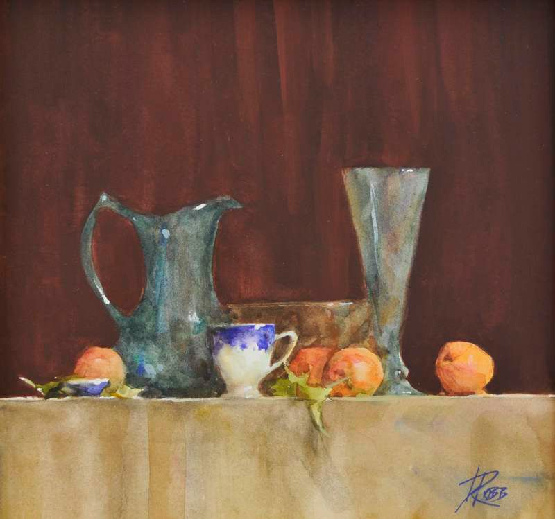 Blue-Green Pitcher and Peaches
