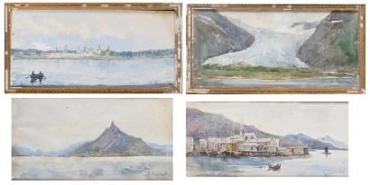 SUITE DE SEPT PAYSAGES LACUSTRES