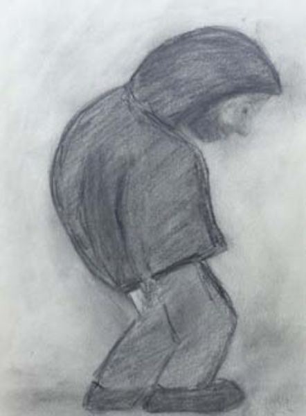 Male figure, bears initials