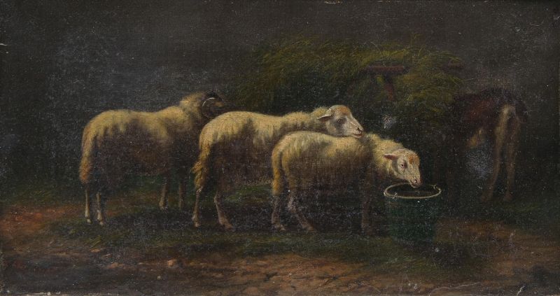 Barn Interior with Sheep