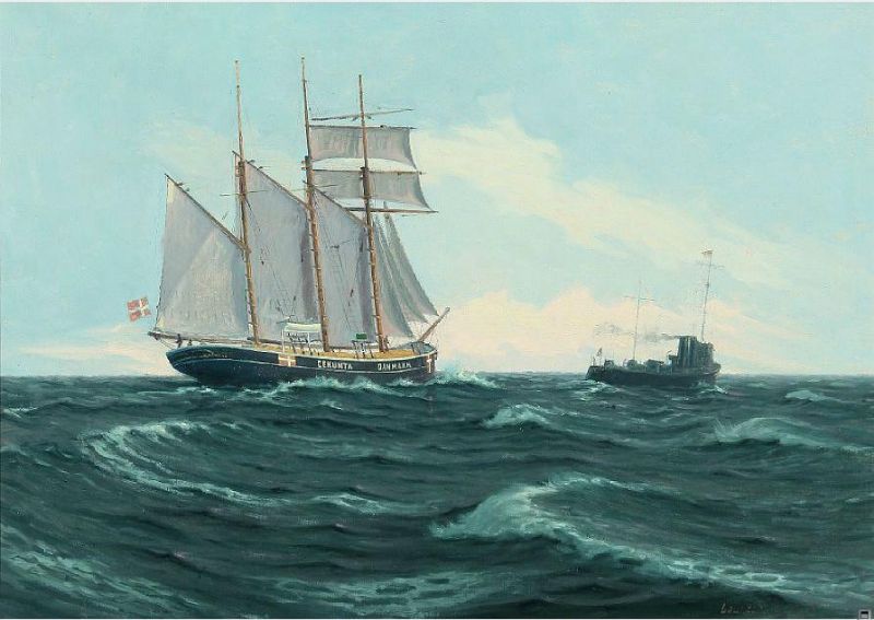 | Seascape with the sailing boat Cekunta, Danmark being detained by German torpedo boat | |