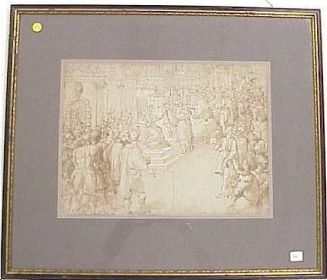 Audience in a city piazza before a monarch