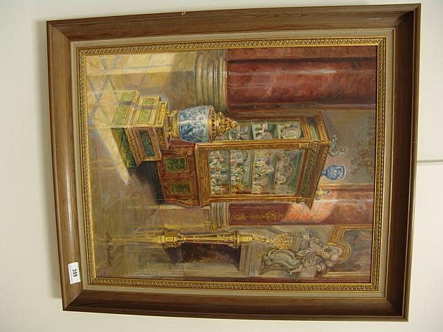 INTERIOR SCENE WITH CABINET OF PORCELAIN