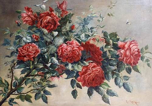 Still life of roses on a branch
