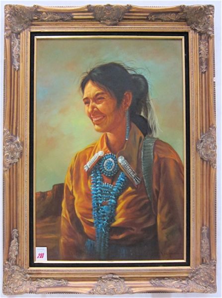 Portrait of a smiling Indian women wearing turquoise jewelry.
