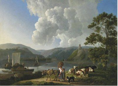 River landscape with shepherds and cattle