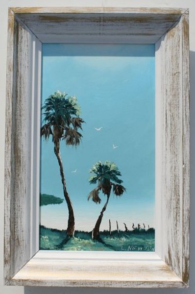 Florida Highwaymen, Coastal scene with palm trees and seagulls
