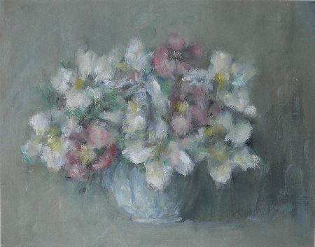 STILL LIFE OF FLOWERS IN A BLUE AND WHITE VASE