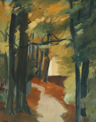 Landscape with path between trees