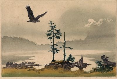 Mountain Lake with Bird of Prey