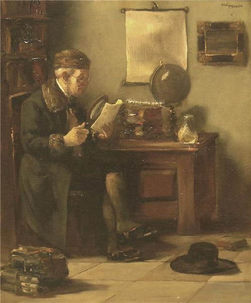 Herr bei der Lektüre in seinem Arbeitszimmer