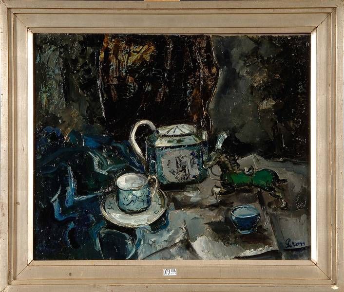 Nature morte au cheval de verre et au service à thé