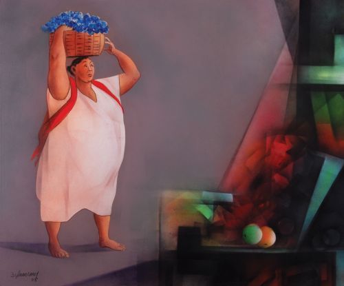 Dama con canasta de flores