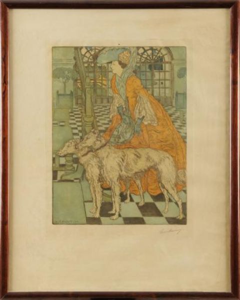 Femme et ses deux levriers