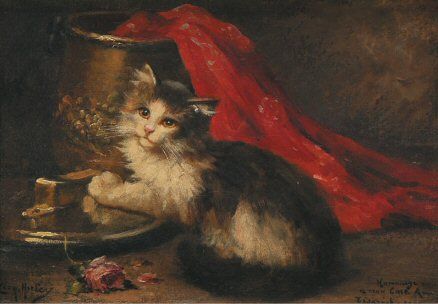 Chaton et pot en cuivre