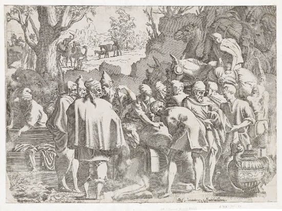 Two Nude Women with Cupid * Men Gathered around a Camel. Zerner 65 and 59.