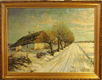Sydsvensk gård med pilallé i vinterlanskap